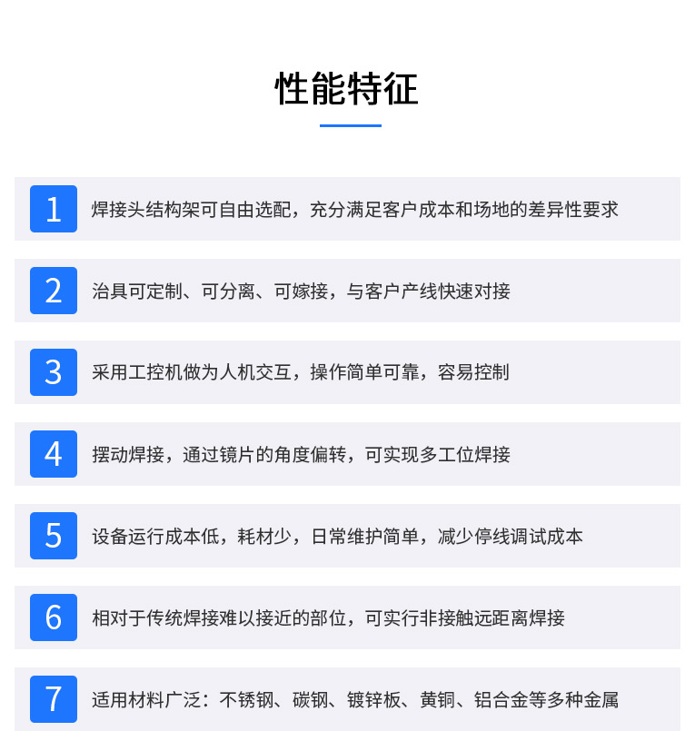 2、強大的PC控制,易于編程、調(diào)試和維護。可完成自動或半自動的點焊、對接焊、疊焊、密封焊,針對復雜的平面直線、圓弧及任意軌跡的焊接。