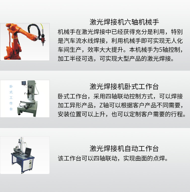 2、強大的PC控制,易于編程、調試和維護。可完成自動或半自動的點焊、對接焊、疊焊、密封焊,針對復雜的平面直線、圓弧及任意軌跡的焊接。